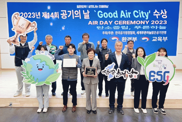 세계푸른하늘맑은공기연맹, 한국공기청정협회 주관으로 열리는‘굿 에어 시티’선정은 공기질 개선 노력으로 안전하고 깨끗한 대기질을 만들고 희망적인 미래 환경도시의 모범을 제시하는 자치단체를 시상하고 있다.