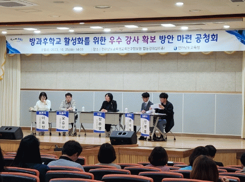 방과후학교 업무 담당자 및 전남 교육가족 100여 명이 참석한 이날 공청회는 김진남 전남도의회 교육위원회 부위원장 축사, ‘방과후학교 우수 강사 확보 방안 마련’ 주제 토론, 청중과의 질의응답 순으로 진행됐다.