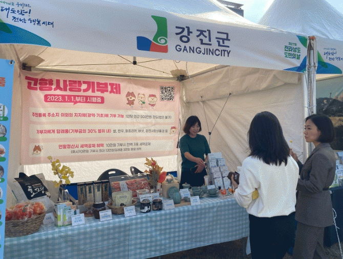 군은 홍보부스에 청자, 쌀, 버섯, 한우, 작두콩차, 된장, 파프리카 등 강진 대표 특산물들을 다양하게 전시해 방문객들의 발길을 사로잡았으며, 방문객들에게 강진 고향사랑기부제 제도와 혜택에 대해 안내했다. 또, 강진군 인기 답례품인 파프리카 시식 행사를 통해 강진군 답례품 알리기에 총력을 기울였다.