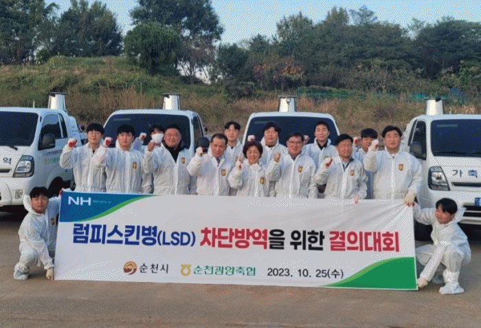 지난 25일에는 순천시, 순천광양축협, 농가 대표가 참여해 ‘럼피스킨병 차단방역을 위한 결의대회’를 순천가축시장에서 가졌다. 가축질병으로부터 청정한 생태수도 순천을 유지하기 위해 총력 대응을 다짐했으며, 농가방역 소독활동에 전념하고 있는 축협공동방제단 소독요원을 격려했다.