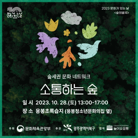 한편 북구의 문화 숲세권 구축에는 ▲놀이요점빵 ▲북구문화의집 ▲북구사회적경제연합회 ▲무등산평촌마을 ▲빛문화예술창고 ▲마음놀이터 ▲자운영아트 등 총 7개 단체가 지난 5월부터 참여하여 숲을 매개로 다양한 문화예술 활동을 전개해왔다.
