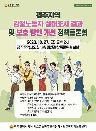 채은지 위원장이 좌장을 맡은 이번 토론회는 지난 4월부터 진행됐던 ‘2023 광주지역 감정노동자 실태조사에 대한 결과보고’를 중심으로 근본적인 문제와 해법에 대해 논의할 계획이다.