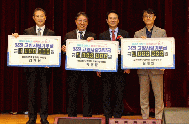 기부자들은 “몸은 떨어져 있지만 우리 출향인들은 사랑하는 고향을 늘 잊지 않고 힘껏 응원하고 있다”며 “고향사랑기부금이 아름다운 강진을 지키고 발전시키는 데 도움이 됐으면 좋겠다”고 밝혔다.
