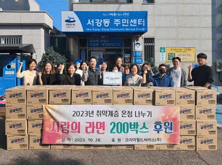 김완식 코리아월드써비스 대표는 “나눔과 봉사를 우선하는 기업으로, 지역주민과 소외된 이웃을 위해 지속적인 나눔을 실천하겠다”고 말했다.