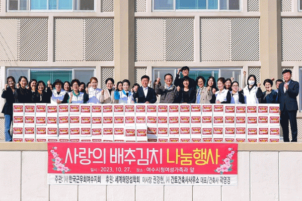 최인숙 회장은 “어려운 상황 속에서 몸과 마음이 지친 분들을 위해 정성스럽게 담갔다”며 “앞으로도 지속적인 나눔과 봉사를 실천해 여수시 지역사회에 보탬이 되고 싶다”고 말했다.