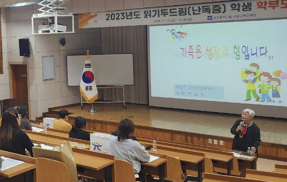 서부교육지원청에 따르면 이번 연수는 학부모가 읽기두드림(난독증) 자녀를 이해하고 학부모 역할의 중요성을 인식할 수 있도록 마련됐다. 학부모의 많은 참여를 위해 평일 저녁과 주말 두 차례로 실시된 이번 연수에는 50명의 학부모가 참석했다.
