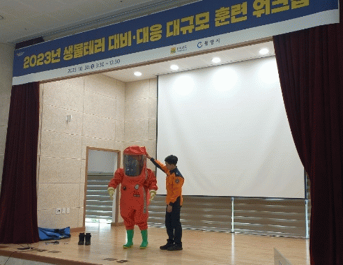 훈련은 생물테러 대비·대응 교육, 레벨 A 보호복 착탈의 교육 및 시연, 토론 기반 조별 활동 및 실행 기반 도상훈련 등으로 진행됐다.