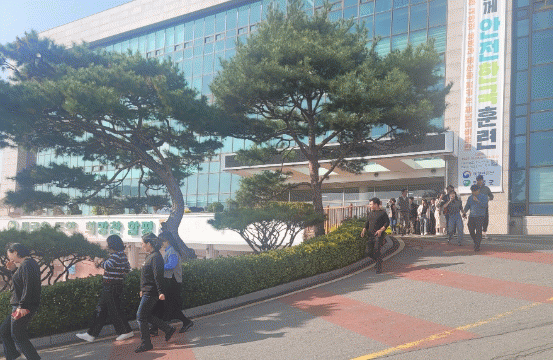 이날 오후 2시 화재 발생을 알리는 경보가 청사 내에 일제히 발령됨에 따라 전 직원과 내방 중인 민원인이 자위소방대의 안내에 따라 신속히 건물 밖으로 대피하는 훈련을 실시했으며 실제 화재 상황을 연출하기 위해 연막탄으로 화재 발생 상황을 조성했다.