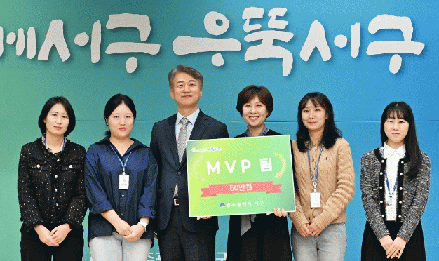 김이강 서구청장은 1일 MVP 시상식에서 “정보송 주무관은 풍암동 주민자치 활동이 활발하게 이루어질 수 있도록 밑바닥에서 열심히 노력해 발로 뛰는 행정을 보여줬고, 고령친화팀은 노인복지증진과 더불어 마을공동체와 함께 하는 경로당 운영 등 소통하는 행정을 보여줬다”고 말했다.