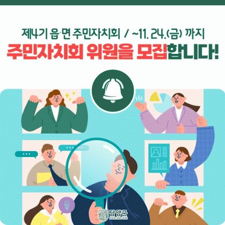 신청은 위원 지원신청서와 필요 서류를 가지고 해당 읍면 사무소에 방문 접수하면 되며, 자세한 공개모집에 대한 사항은 읍면 사무소로 문의하거나 담양군청 누리집의 공고문에서 확인할 수 있다.