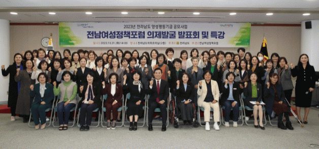 전남여성정책포럼은 전라남도를 4개 권역별로 구분하여 지역 여성, 가족, 아동 등과 관련한 정책 의제를 발굴하고, 이를 공론화해 정책을 제안하는 민ㆍ관 협력기구로 양성평등과 여성 권익 신장, 각종 협력사업 등을 통해 여성정책 및 도정 제안 역할을 하고 있다.
