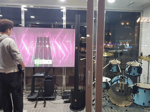 통유리로 된 12평의 2개 부스에 인공지능 드럼.피아노, 사이니지 및 악기와 음향시스템을 구축, 인공지능 밴드.리듬 액션 게임 등을 체험할 수 있다.