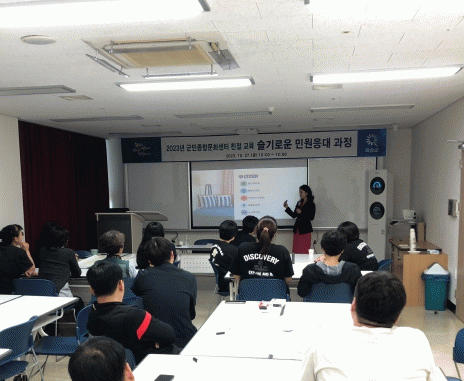 외부 전문 강사를 초빙하여 공직자의 서비스 정신 및 민원인 친절 응대를 주제로 진행했으며, 민원 상황별 적절한 응대 및 행정서비스 제공을 위한 대민 친절 교육을 중점적으로 다뤘다.