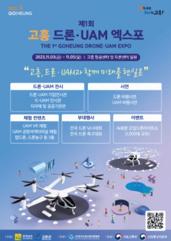 이번 엑스포는 ‘고흥, 드론·UAM(도심항공교통)과 함께 미래를 현실로’라는 주제로 고흥 항공센터 일원에서 백원국 국토교통부 제2차관과 김승남 국회의원, 공영민 고흥군수, 국토부 산하 주요 공공기관장 등의 인사들이 참석한 가운데 개최된다.