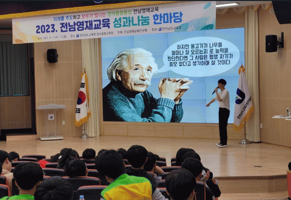 전라남도교육청은 11월 1일부터 3일까지 전남교육청창의융합교육원에서 ‘2023 전남영재교육 성과 나눔 한마당’을 성황리에 개최했다고 밝혔다.