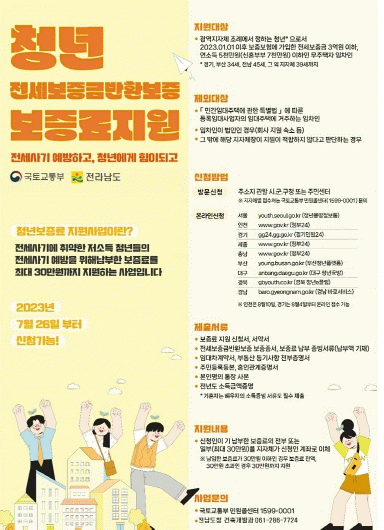 전세사기가 걱정되는 도민은 전세보증금 반환 보증을 가입하고 보증료를 지원받을 수도 있다. 청년 전세보증금 반환 보증료는 최대 30만 원이 지원되며 주소지 관할 시군 건축부서에 상담 후 신청하면 된다.