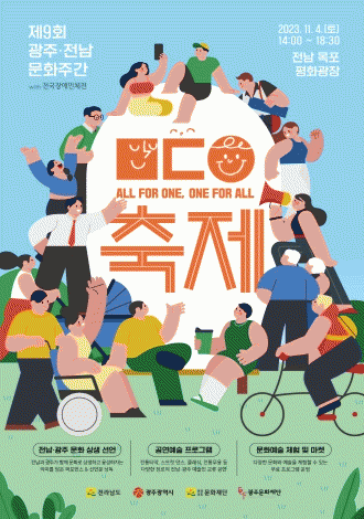 가장 주목할 볼거리는 4일 목포 평화광장에서 진행되는 전남·광주 문화주간행사 ‘ㅁㄷㅇ(모두의) 축제’다. 전남·광주 문화주간은 문화예술을 통해 상생협력하는 축제다. 이번 전국장애인체전과 연계해 특색있는 문화예술 체험 기회를 제공한다. 모두의 축제인 만큼 계단 등 장애물을 최소화하고 별도 관람 장소를 마련하는 등 배리어프리를 고려한 시설과 공연으로 구성된다.