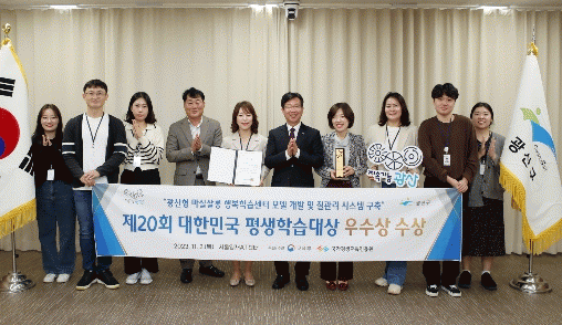 이날 우수사례로 선정된 ‘광산형 마실살롱 행복학습센터’는 지역 특성을 살린 5개의 학습모델을 개발하고 계획, 실행, 평가, 개선 4단계의 체계적인 질 관리 시스템을 구축하는 등의 성과로 높은 평가를 받았다.
