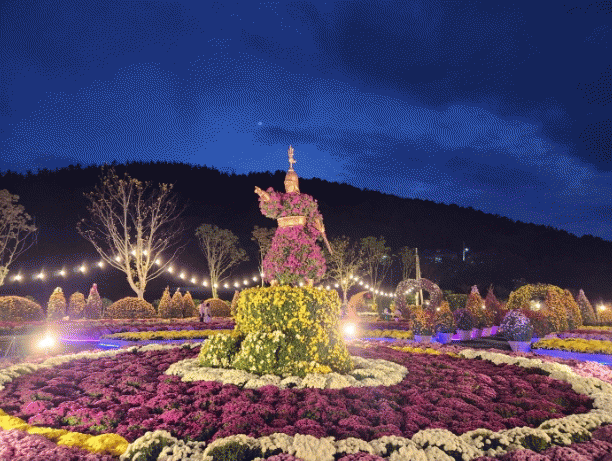 이번 국화전시회는 야간개장도 함께 진행해 낮에 보는 국화전시장과는 또다른 분위기를 느낄 수 있는 야경맛집으로 꼽히고 있다.