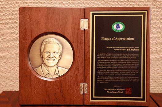이에 군은 완도산 해조류 이미지 제고에 큰 영향을 준 미국 항공우주청에 감사패를 전달하게 됐다.
