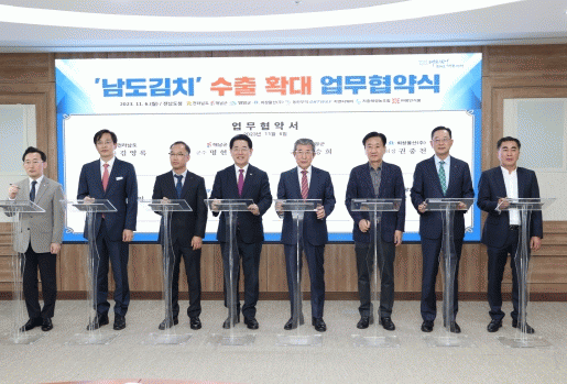 해남군은 6일 도청 서재필실에서 전라남도, 영암군, 희창물산(주), 동진무역, 지앤티웨이, 지중해영농조합, ㈜왕인식품 등 7개 기관·기업과 남도김치 수출 확대를 위한 업무협약을 체결했다.