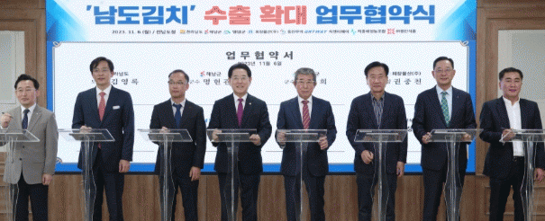 김영록 전남도지사는 “한국음식의 기본은 ‘김치’이고, 가장 맛있는 김치는 ‘남도김치’”라며, “이번 업무협약으로 전남도와 해남군, 영암군이 김치에 대한 물류비와 현지 홍보행사를 적극 지원해 ‘남도김치’가 북미지역을 넘어 전 세계로 뻗어나가도록 하겠다”고 당부했다.