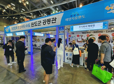 군은 수산물 홍보 및 판매를 위해 관내 11개 기업과 함께 역대 최대 규모의 ‘완도군 수산 식품 공동 홍보관’을 운영했다.