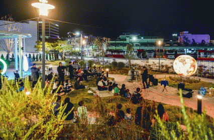 ‘반보기정원 달밤캠핑 피크닉은’ 도심 속 힐링정원, 반보기정원(장천동 18-15) 에서 이뤄지는 피크닉 행사로, 버스킹 공연, 마술쇼와 함께 가족, 연인, 친구들과 도심 속 정원 캠핑을 즐길 수 있게 마련됐다. 또한 특화먹거리존 및 터미널 신규 창업자들이 선보이는 피자, 볶음밥, 뱅쇼 등도 함께 판매했다.