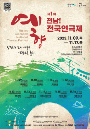 전라남도와 여수시가 공동 주최하고 (사)한국연극협회 전라남도지회와 여수시지부가 주관하는 제1회 예향 전남 연극제는 9일 개막식을 시작으로 10일부터 6개 극단의 연극 경연이 진행된다.