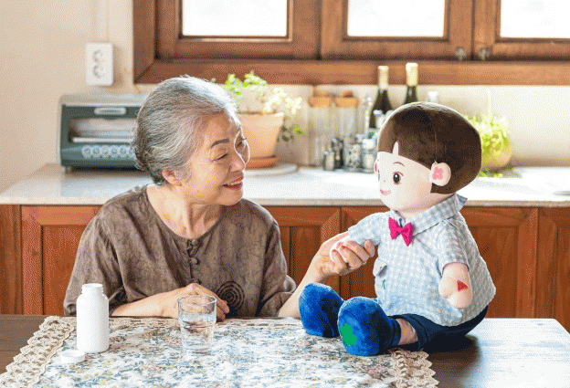 지역사회 돌봄 시스템과 연계해 우울감 해소 및 비대면 모니터링 진행, 일상생활 건강관리 등 어르신 밀착 생활 관리와 치매 환자 인지훈련 프로그램 제공, 말동무 등 다양한 기능을 탑재한 지능형 로봇으로, 어르신의 정서와 건강을 살핀다.