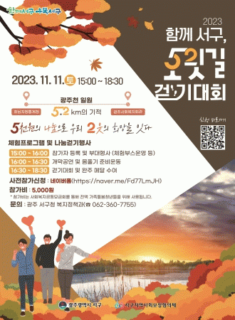 서구 18개동 지역사회보장협의체 위원들이 주관하는 이번 걷기대회는 광주천 동천교 하부에서 시작해 광운교 하부를 반환점으로 5.2km를 걷는 행사로, 주민들의 자발적인 참여로 나눔문화를 확산하기 위해 추진됐다.