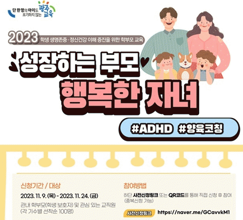 이번 교육에 관심있는 학부모는 신청 링크 및 포스터 내 QR코드를 통해 9일부터 24일까지 사전 신청이 가능하다.