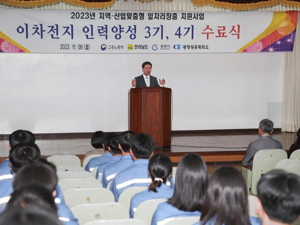 수료식에 참석한 정인화 광양시장은 “치열한 경쟁률을 뚫고 들어온 이차전지 채용약정형 인력양성 교육에 열정적인 태도로 참여하여 수료한 것을 진심으로 축하드린다”며 “앞으로도 광양시 청년들에게 소득 걱정 없는 ‘안심’과 일상 속 인프라에 대한 ‘만족’을 주기 위해 최선을 다하겠다”고 말했다.