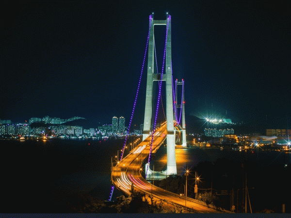 특히, 최초 100% 국내 기술 현수교라는 타이틀을 자랑하는 이순신대교는 하늘과 바다 사이의 평행선, 철로 만든 하프로 불릴 만큼 유려한 자태로 아름답게 반짝이며 보는 이의 낭만과 감성을 자극한다.