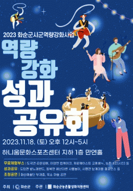이번 행사는 화순군이 주최하고 화순군 농촌활성화지원센터가 주관하며, 2023년 농촌지역 활성화를 위해 1년간 진행했던 성과 보고와 농촌 발전에 함께 참여한 지역민들이 함께하는 자리를 마련할 계획이다.