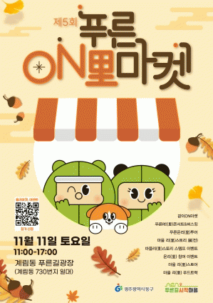 올해 다섯 번째로 열리는 이번 마켓은 푸른길시작마을(구 푸른개미마을) 새뜰사업 일환으로 이전에 비해 행사장을 더욱 확대해 주민과 상인들이 함께 만들어가는 ‘같이온마켓’, 청년 예술가와 청소년들이 선사하는 ‘푸른리(里) 콘서트·버스킹’, 푸른길시작마을 프로그램 성과공유 전시회 ‘마을리(里)스토리 전(展)’, 푸른길시작마을 주민협의체가 운영하는 ‘먹거리존 마을리(里)스토어’ 및 각종 체험 부스가 운영된다.