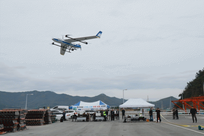 이날 비행체에 1.5kg의 물품을 싣고 완도 화흥포항에서 소안도까지 총 50km의 거리를 왕복하는 비행 실증이 이뤄졌다.