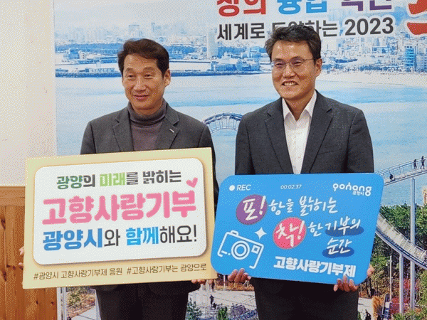 제도 시행 초기인 2월에는 정인화 광양시장이 고향사랑기부제 참여 분위기 조성과 자매결연도시와의 상생발전을 응원하기 위해 포항시에 기부했으며, 이후 이강덕 포항시장도 광양의 발전을 위해 광양시 고향사랑기부제에 동참했다.