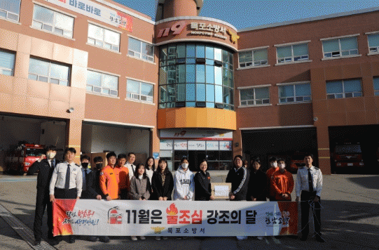 항도여자중학교 학생 40여명이 건넨 선물과 쪽지에는 ‘항상 화재나 응급상황으로부터 지켜주셔서 감사합니다.’, ‘항상 목포시민을 위해 희생해주셔서 감사합니다.’, ‘소방관님들 불 끄시는 모습 멋져요!’, ‘덕분에 발 뻗고 편히 자요!’ 등 정성이 가득한 응원의 메시지가 담겼다.