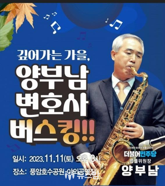 양부남 위원장은 오는 11월 11일(토) 오후 3시 풍암호수공원 야외공연장에서 ‘양부남 변호사 버스킹’을 개최한다고 밝혔다.
