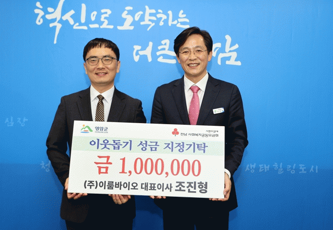 영암군 관계자는 “지역사회 이웃들을 위해 나눔을 실천해준 조진형 대표에게 감사드리고, 감동 있는 복지행정을 위해 노력하겠다”고 전했다.