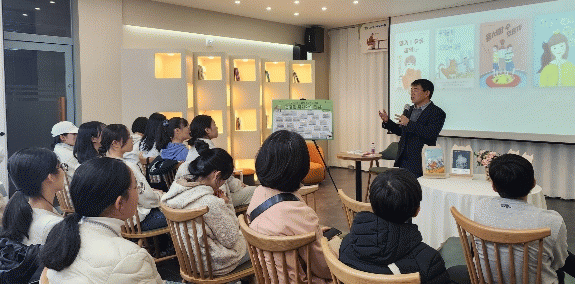 11일 동천동 행정복지센터 북카페에서 진행된 특강에서 문경민 작가는 ‘더 나은 세상을 향해’라는 주제로 입양 가정에 관한 이야기를 담은 책 '훌훌'을 소개했다. 또 문 작가는 소설가가 되기까지의 과정, 창작활동 등 자신의 이야기를 통해 청소년들과 소통의 시간을 가졌다.