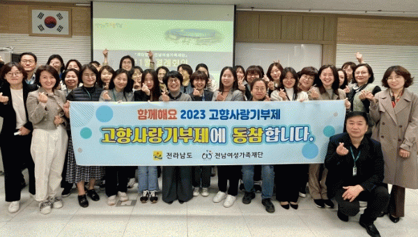 전남여성가족재단은 전라남도가 고향사랑기부제 참여 홍보를 위해 실시하는 ‘전남 고향사항기부제 동행 응원 릴레이’에 동참하고, 지난 9일 전남도 고향사랑과와 여성가족재단 정례회의에서 캠페인을 했다.