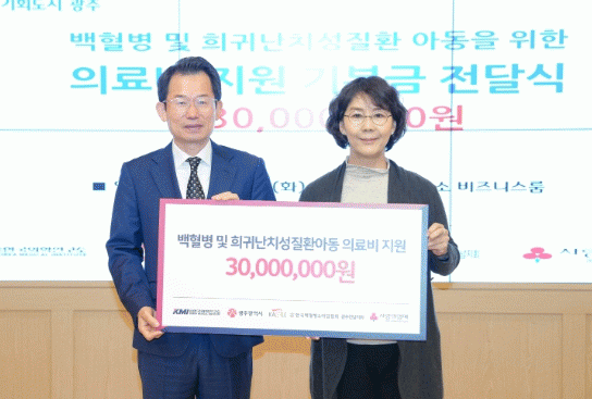 후원금 3000만원은 백혈병·희귀난치성질환 아동들을 위한 의료비 지원에 사용될 예정이다.