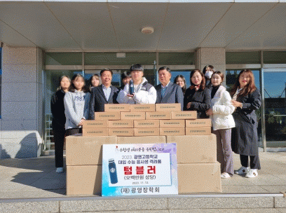 (재)광영장학회는 광영고등학교 민연옥 교장 선생님과 학생들이 참석한 가운데 2024년도 대입 수능 응시생 173명에게 고등학교 3년 동안 성실히 노력한 학생들이 수능에서 좋은 결과를 받길 바라는 마음을 담아 격려 물품(텀블러)을 전달했다.