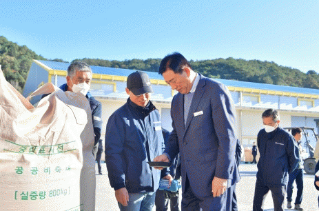 현장을 방문한 김한종 장성군수는 최선을 다해 고품질 쌀을 생산한 농업인들에게 감사 인사를 전했다.