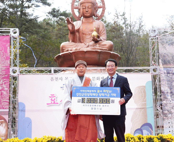 정암 큰스님은 “지역 학생들에게 희망을 전달해주고 싶은 마음에 장학금을 기탁했다”며 “강진군민 모두가 함께 나눔의 정을 실천해 많은 학생들이 지역 인재로 성장할 수 있었으면 한다”고 말했다.
