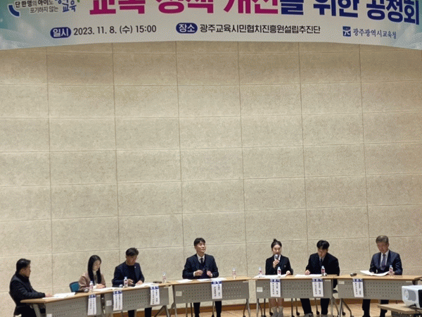 공청회의 좌장은 전남대학교 박제진 교수가 맡았으며, 박필순 광주시의원, 동신여자중학교 박윤희 학부모회장, 장덕중학교 나누리 학교운영위원장, 광주고등학교 진정준 교장, 풍암고등학교 채나림 학생, 전남고등학교 김성민 학생이 토론자로 참석했다.