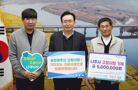 나주시 금천면 출신인 최 대표는 “고향 나주의 발전을 위해 고향사랑기부제에 동참하게 됐다.”며 “고향사랑기부금이 지역 발전을 위해 뜻깊게 쓰이기 바라고, 나주시 정책에 작지만 큰 도움이 되어 뿌듯하다.”고 기탁 소감을 전했다.