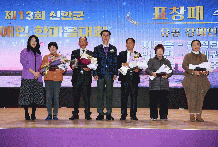 유공자 표창으로는 장애인 권익증진에 공헌한 지도읍 윤정란 등 5명이 표창장을 받았다.
